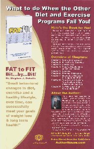 11" x 17" Poster $5.00 per poster includes postage and handling Brochures also available: Folded, 4" x 8" for mailing or counter display. Cost dependent on quantity. Contact us for details: 602-224-5141 Make check/money order payable to "Fat to Fit, Bit by Bit" and mail to: Doholis Chiropractic 2536 East Indian School Rd Phoenix, AZ 85016 Posters and pamphlets mailed via USPS 1st class. |